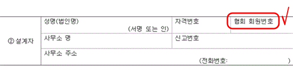 최근 들어 세움터 등을 통해서 설계자, 감리자, 대행건축사 등의 정보를 입력하려면 개정된 양식에 따라 "협회 회원번호"를 입력해야 하는 칸이 나옵니다.