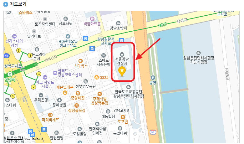 이렇게 서울강남경찰서의 위치를 손쉽게 확인할 수 있습니다.