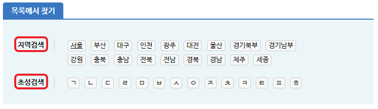 화면 목록에서, 지역검색, 초성검색을 입력해서 빠르게 관할 경찰서 정보를 찾을 수 있습니다.