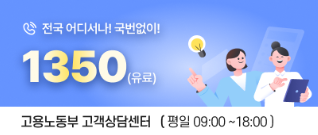고용노동부 민원신청을 위한 대표 전화번호 및 고객상담센터 번호는 국번 없이 1350입니다.