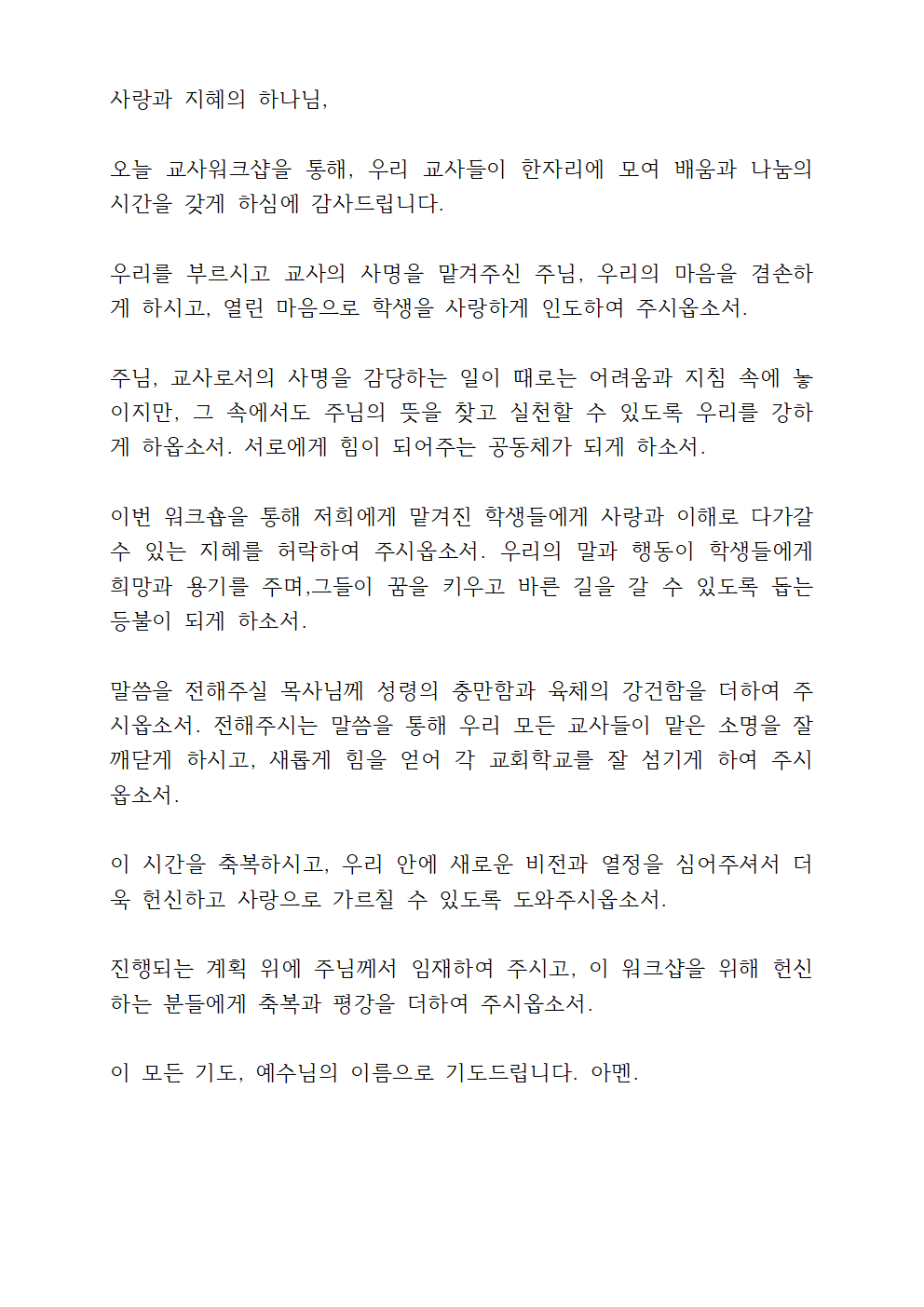 교사 워크샵 기도문