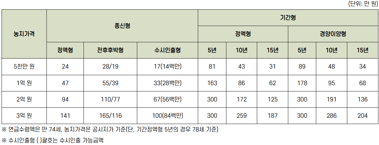 농지연금 종류별 예시