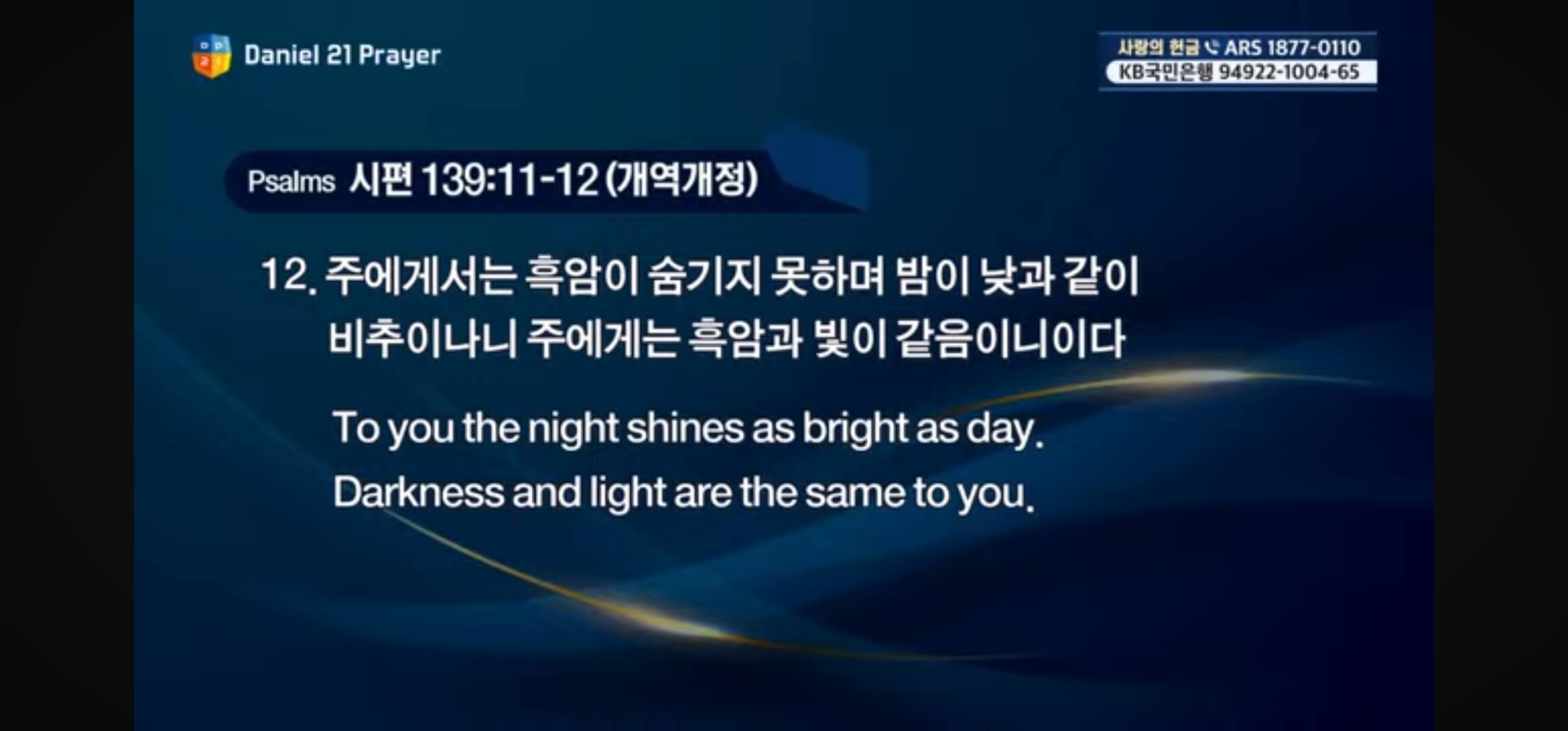 "가장 어두운 순간에 함께 하시는 하나님" (시편 139:11~12)