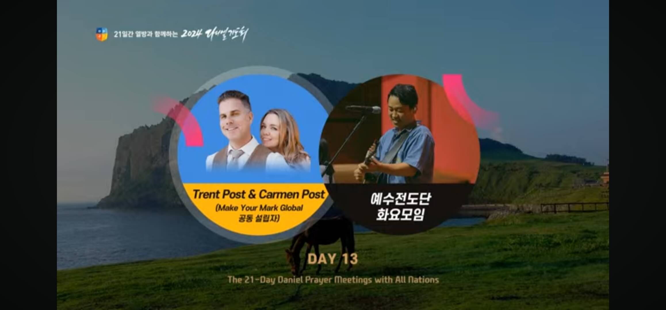 오늘은 2024 다니엘 기도회 13일 차 Trent Post, Carmen Post 부부의 간증 관련 글을 안내해 드리겠습니다.