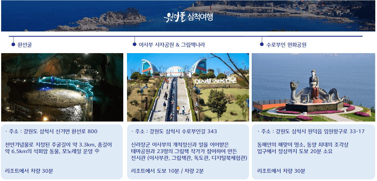 ※ 삼척에는 대명리조트의 간판 브랜드인 쏠비치 삼척이 있습니다. 객실 예약 등 상세 정보를 확인하시려면 다음 글을 참고하세요.