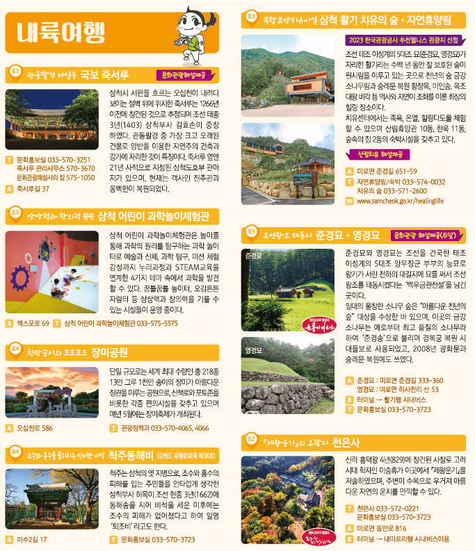 더 많은 주변 관광지를 살펴보시려면 다음의 삼척문화관광 홈페이지를 확인하세요.