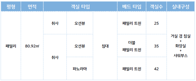 ○ 패밀리 오션뷰 객실 요금 (무기명 회원 기준, 2024.07.19 ~ 2025.07.18)
