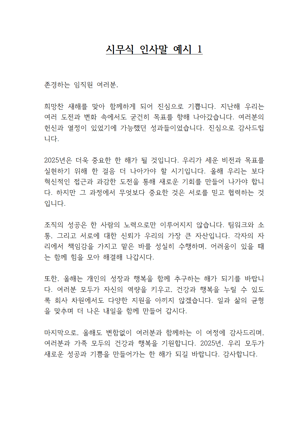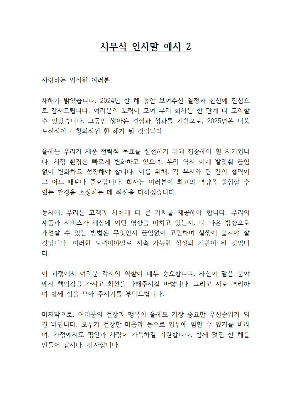※ 시무식 인사말을 한글 문서 or PDF 문서로 받으시려면 아래를 참고하세요.