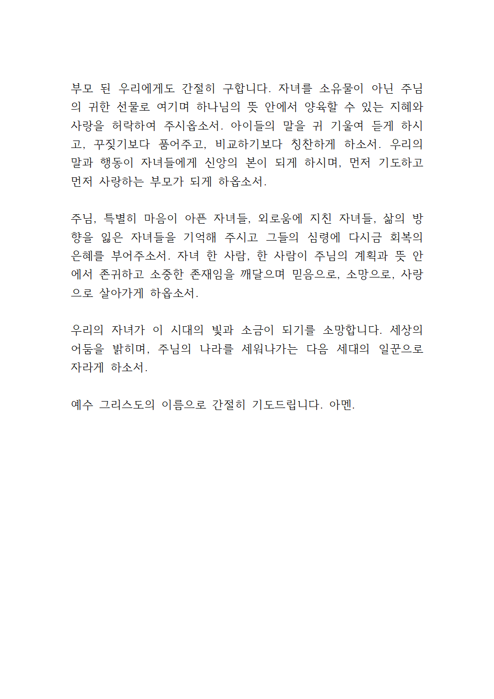 ※ 다음의 기도문들을 참고해서 기도해 보세요.