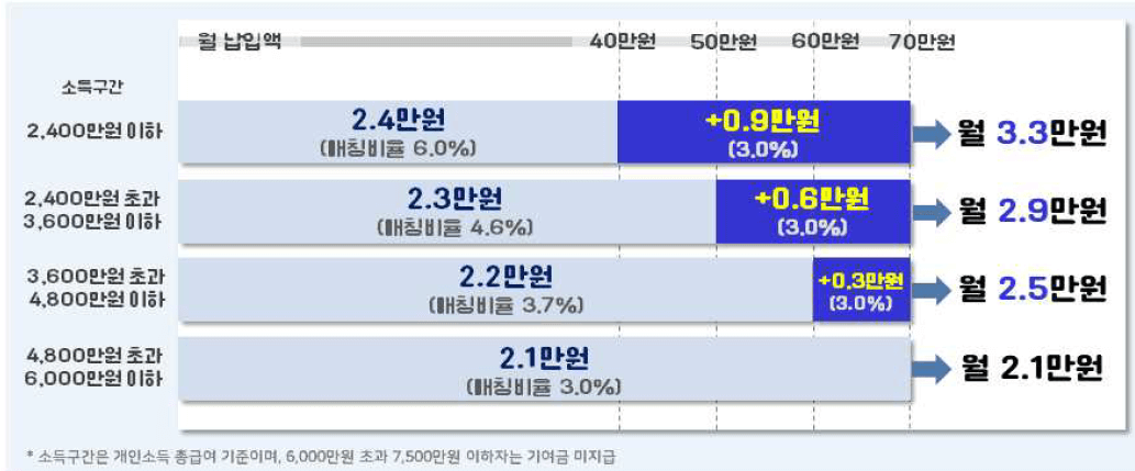 - 모든 소득 구간의 매칭 한도가 월 70만 원으로 확대