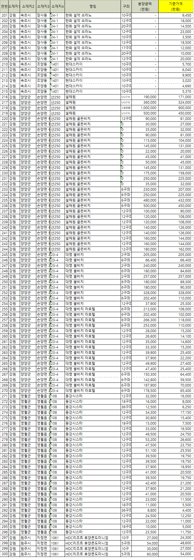 '콘도 회원권 가격, 시가표준액, 기준가격 조회방법'
