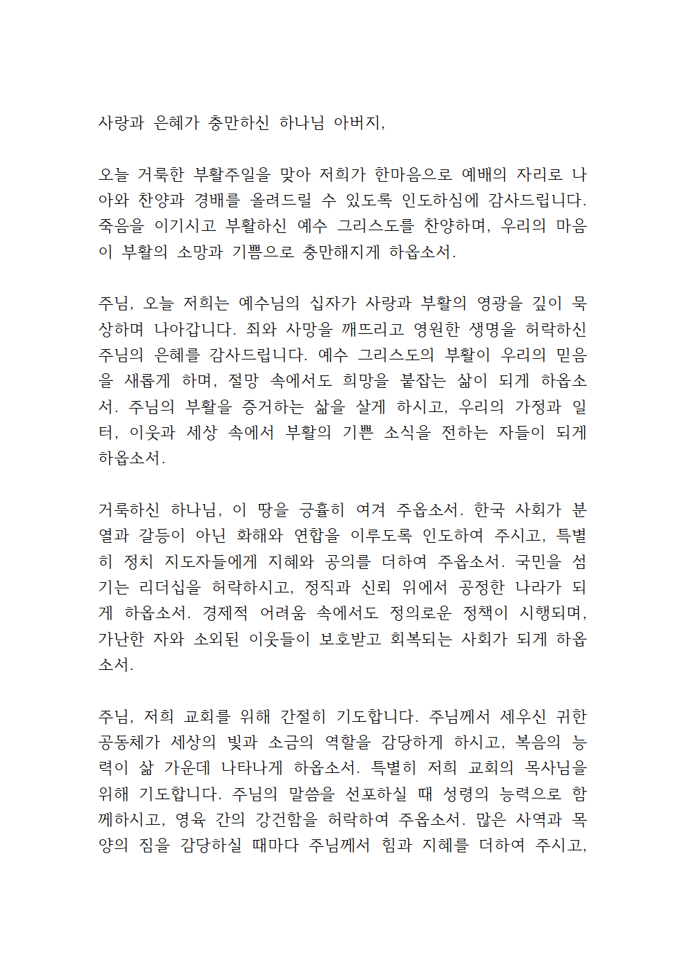 2025년 4월 셋째 주일낮예배 대표기도문 파일