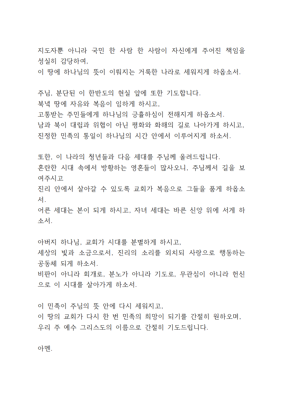 나라와 민족을 위한 기도문