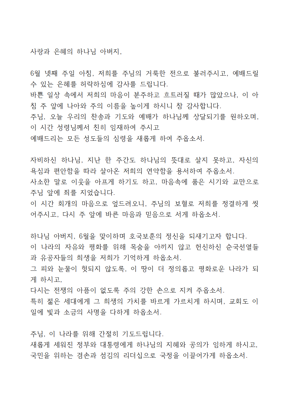 이번 글에서는 2025년 6월 4주 대표기도문을 안내해 드리겠습니다.