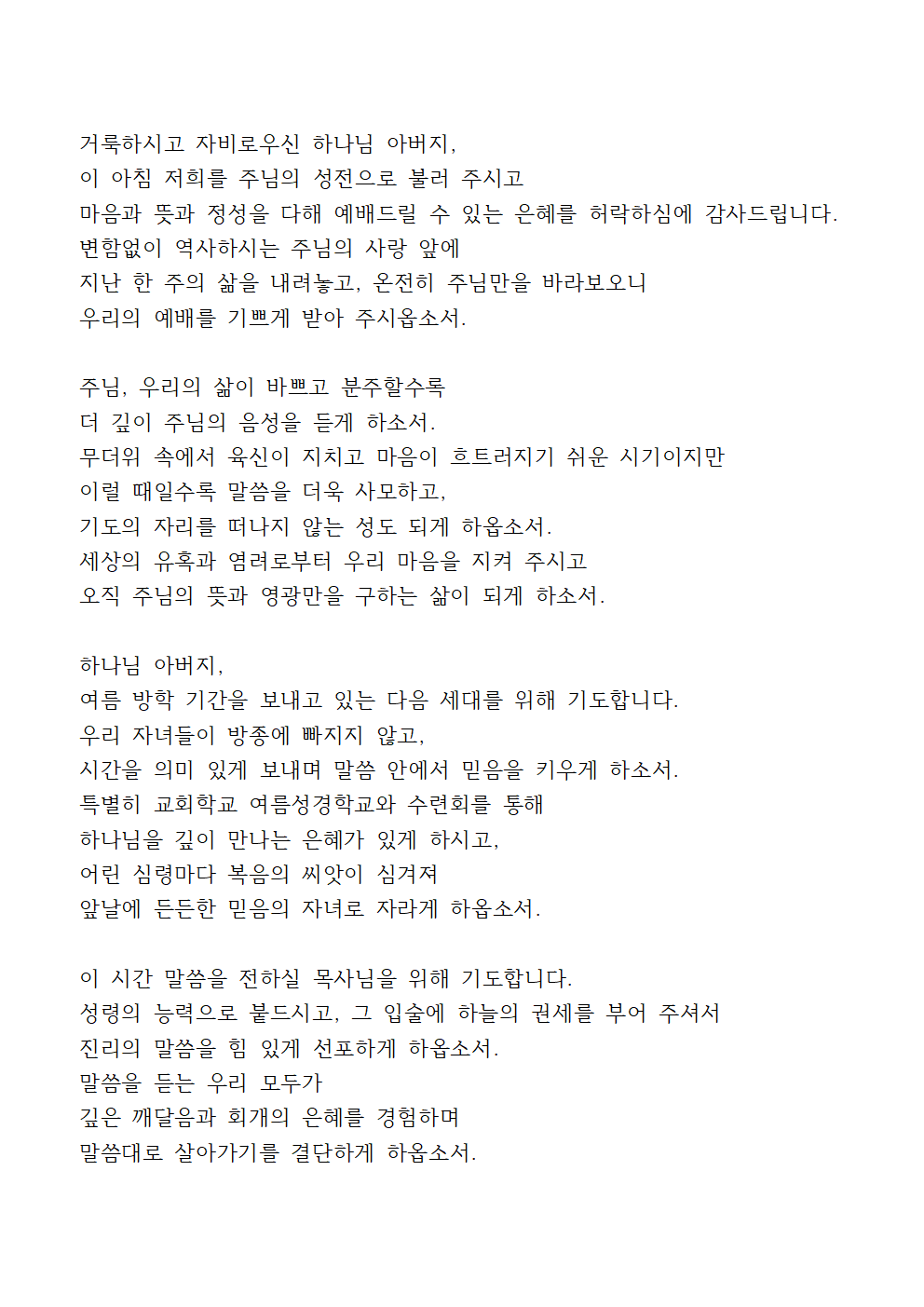 7월 넷째주일 대표기도문 모음 (3 종류)