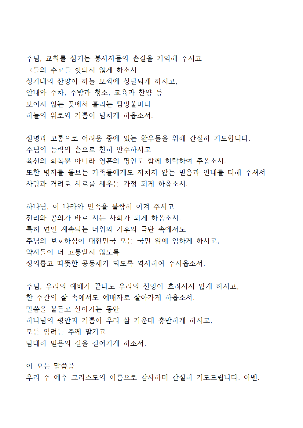 7월 넷째 주일 관련 기도문 더 보기