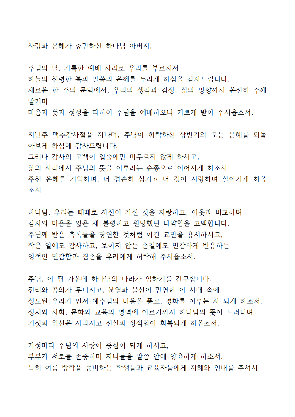 ※ 기도문을 한글 문서 or PDF 문서로 받으시려면 아래를 참고하세요.